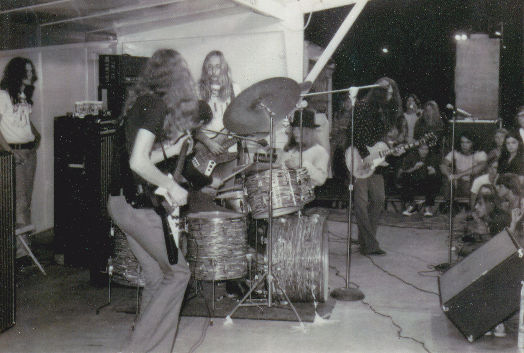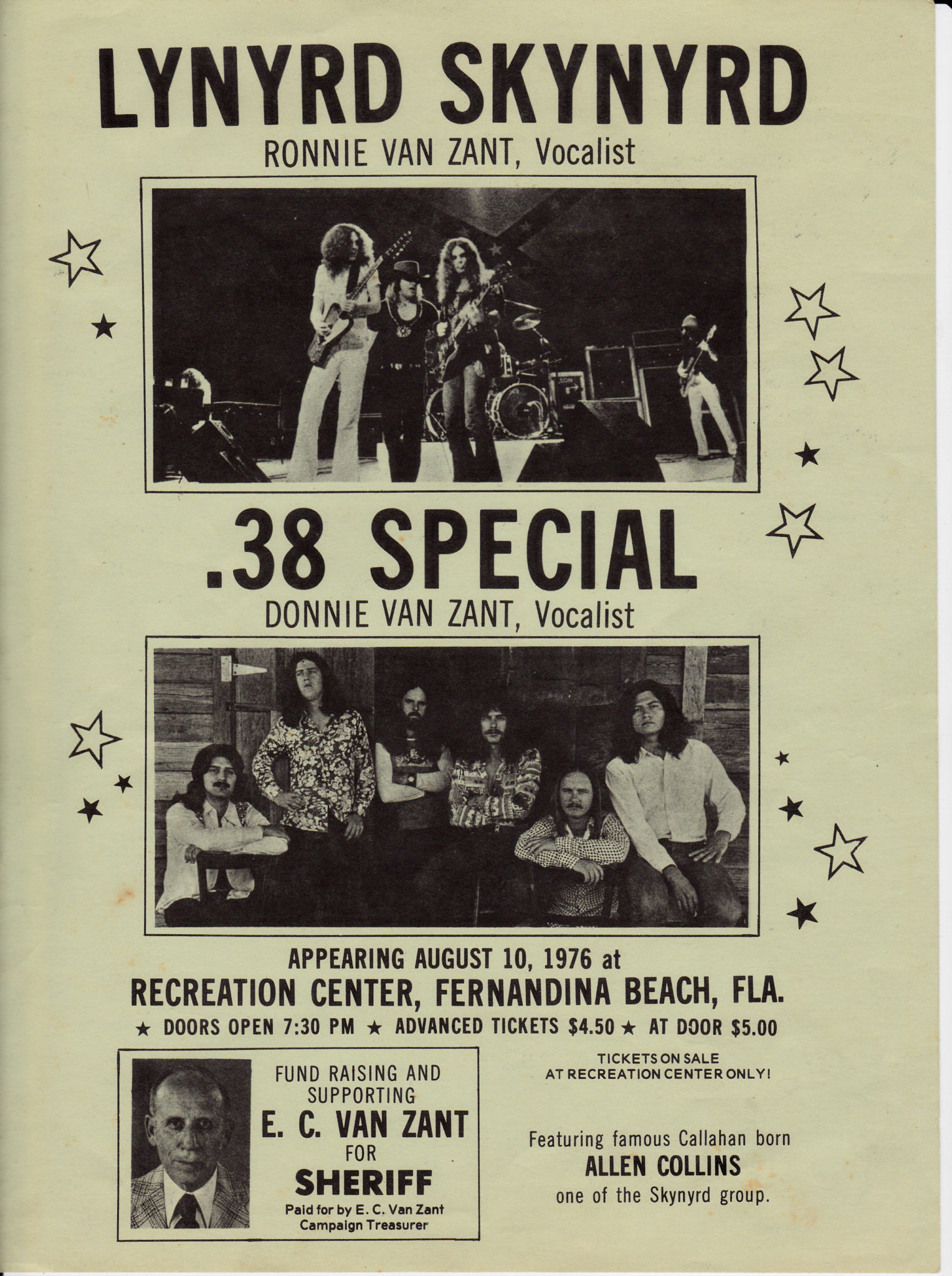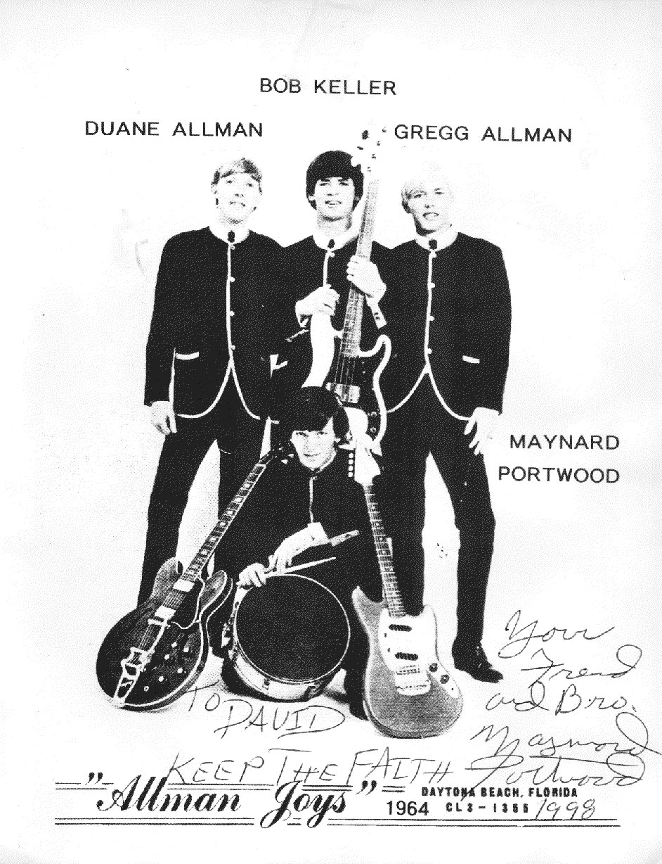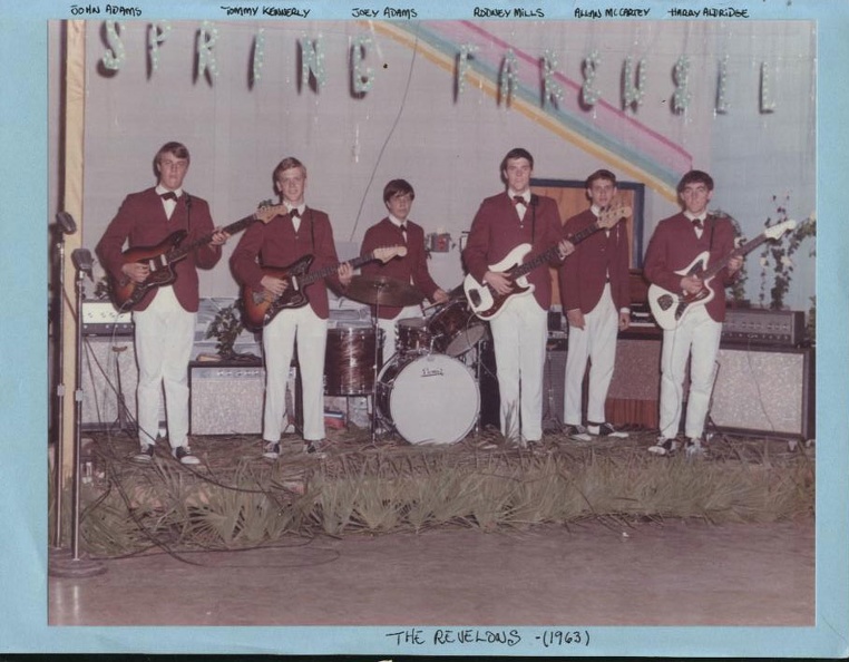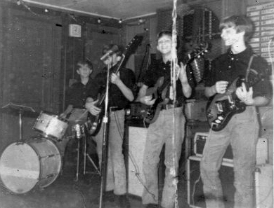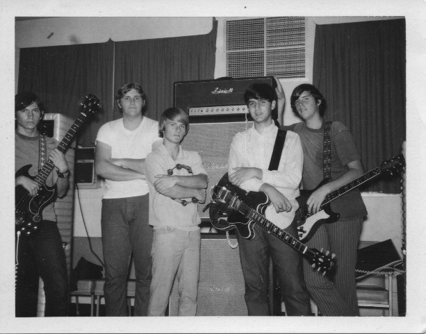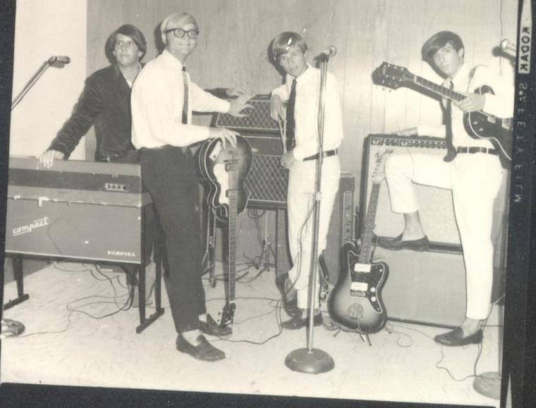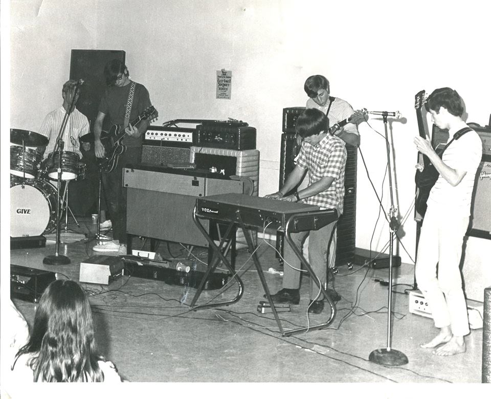 1965 – The MODS: (l-r) James Rice; Larry Steele; Allen Collins; Taylor Corse This was our very first band, founded in the fall of 1964 by Allen Collins, Larry Steele, James Rice and Donnie Ulsh, (not pictured). Substituting for Donnie on this particular night was Taylor Corse, one of the guitarists of our rival band, the Squires. Within the next few months Ronnie Van Zant would join the Squires as their lead singer.