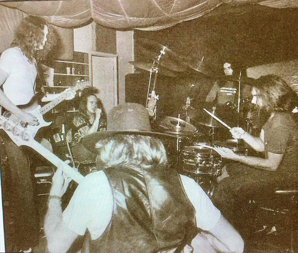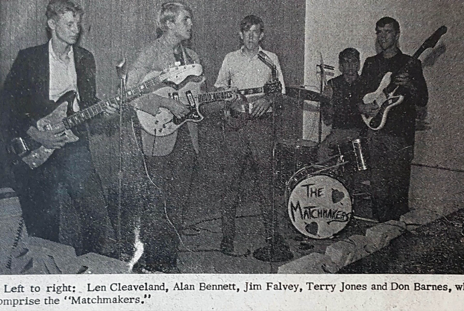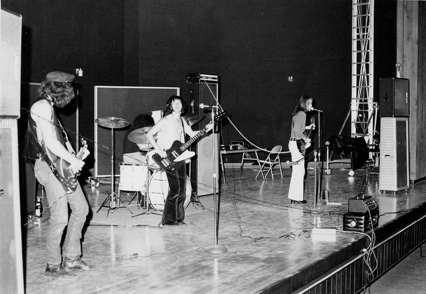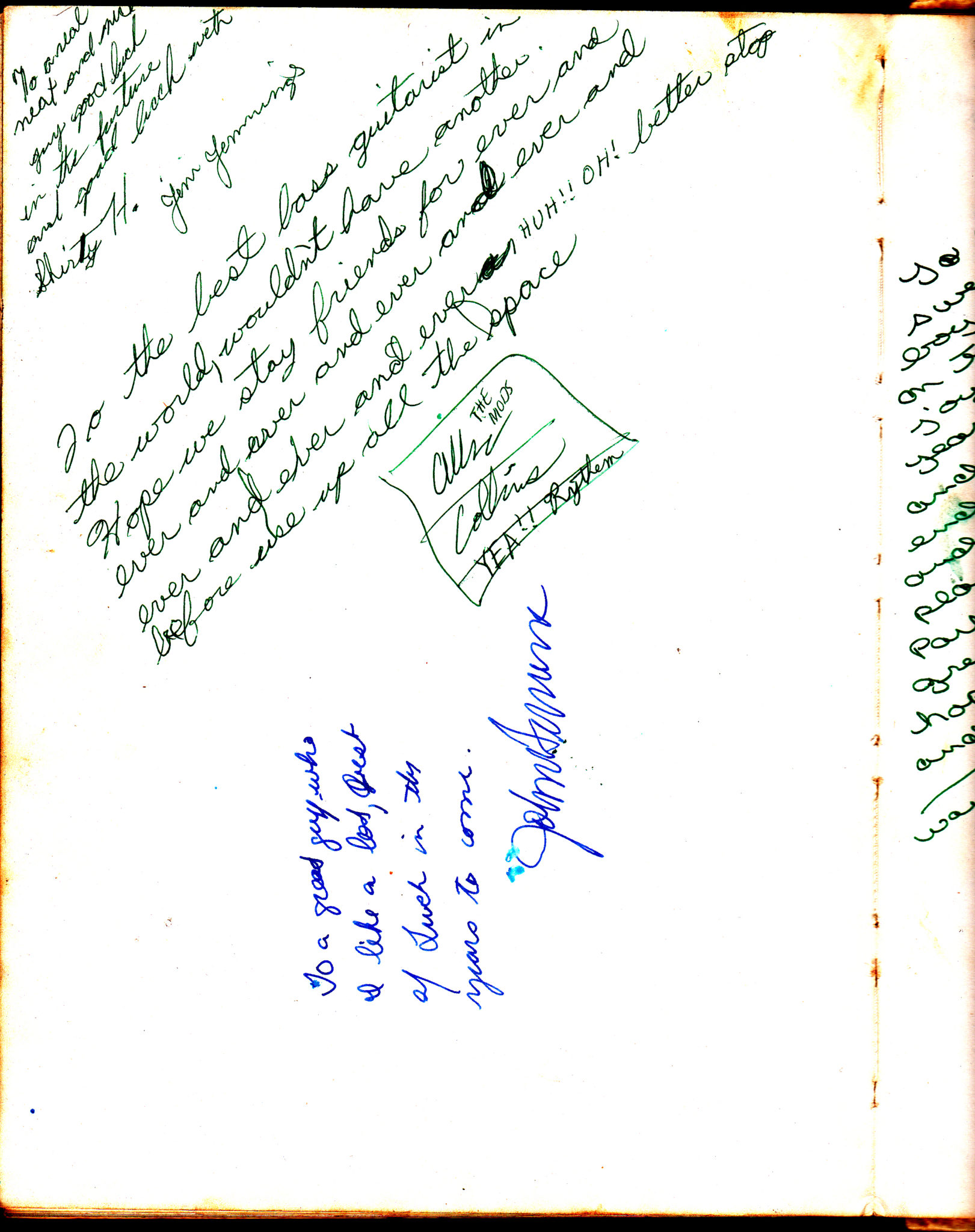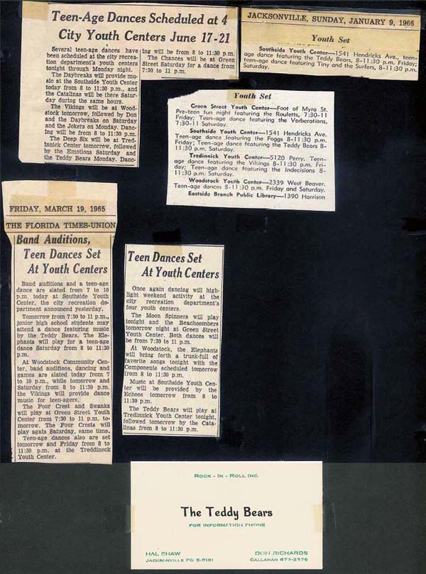 1965 – The MODS: (l-r) James Rice; Larry Steele; Allen Collins; Taylor Corse This was our very first band, founded in the fall of 1964 by Allen Collins, Larry Steele, James Rice and Donnie Ulsh, (not pictured). Substituting for Donnie on this particular night was Taylor Corse, one of the guitarists of our rival band, the Squires. Within the next few months Ronnie Van Zant would join the Squires as their lead singer.